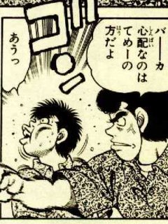 ・一歩やめるかなって話してたら鷹村さんが「もう寝ろ!」って会話打ち切りに入った。しかも自分が最初に匂わせたくせに「一歩がボクシングやめるワケねえだろ。ボクシングとっちまったら何も残らねえヤツなんだからよ」って言った・・・・。いっておくけど、鷹村さんに会うまであの子ボクシングのボの字も知らなくて、ジムに入るまで試合見にいった事なかったんですよ・・・?