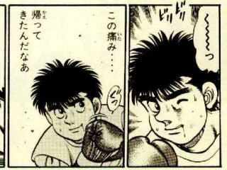 鷹村さんが一番嬉しいくせに。つかアニメでは鷹村さんの方がニヤニヤしてました。ナイス改変。