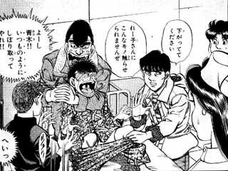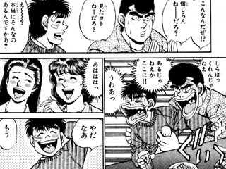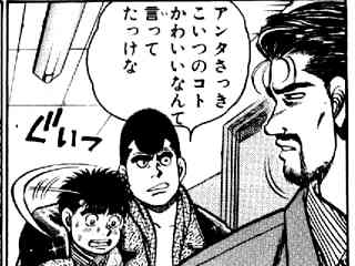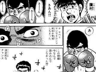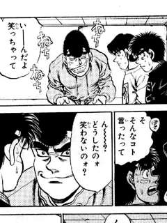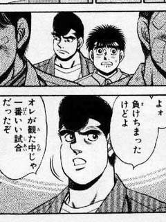 ・一歩やめるかなって話してたら鷹村さんが「もう寝ろ!」って会話打ち切りに入った。しかも自分が最初に匂わせたくせに「一歩がボクシングやめるワケねえだろ。ボクシングとっちまったら何も残らねえヤツなんだからよ」って言った・・・・。いっておくけど、鷹村さんに会うまであの子ボクシングのボの字も知らなくて、ジムに入るまで試合見にいった事なかったんですよ・・・?