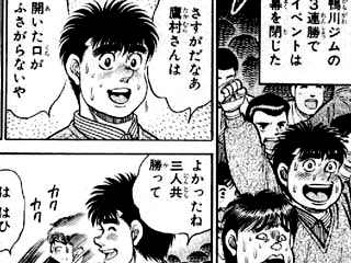 鷹村さんが一番嬉しいくせに。つかアニメでは鷹村さんの方がニヤニヤしてました。ナイス改変。